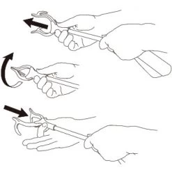 The Etac Aktiv grabs make reaching and grabbing easier for people with reduced arm and hand function, thanks to their lightweight and ergonomically designed handles. The clamp can span a large space as well as grab the smallest object. All models have a magnet handle for picking up small metal objects. The curved handle utilizes the strength in the hand and provides an effective grip. The index finger rest on the handle provides extra precision. The entire surface of the gripper arm is provided with a durable rubber coating that guarantees sufficient skid resistance, so that less force is required. The gripper arms can be set in two positions. This allows it to be used both horizontally and vertically.