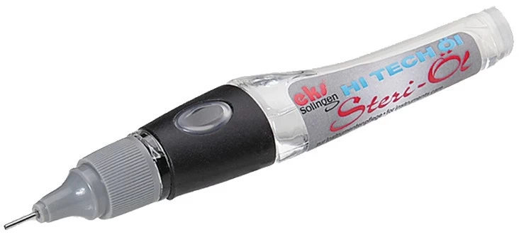 EKS Instrument Oil is a maintenance oil for the lubrication of (hinged) instruments. Equipped with a 7 mm tip, capacity 12 ml. EKS synthetic instrument oil is colorless, silicone-free and completely odorless. The instrument oil is heat-resistant and can be used up to a temperature of 260° C, does not stick and does not cause stains. EKS instrument oil is used for possible sterilization and is packaged in a handy maintenance pen applicator.