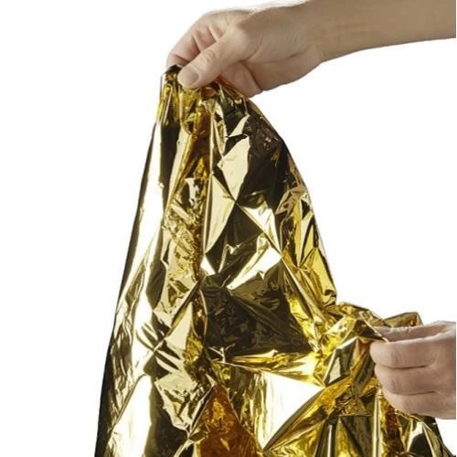 First aid rescue blanket silver/gold. 210x160cm 12mu. A strong rescue blanket that protects against cold, heat, moisture and dirt. Available per piece
