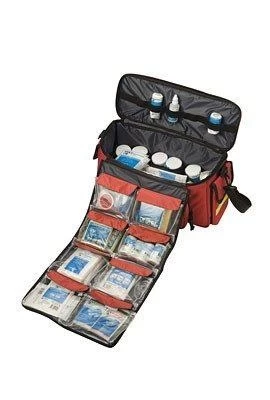 The first aid shoulder bag with sports and events filling is made of sturdy, high-quality material. This shoulder bag has a detachable, fold-out flap with practical storage compartments for the organized storage of products. The shoulder bag can be personalized with an insert card.