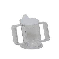 Ideal slanted, transparent cup with large handles. You can drink without tilting your head back.