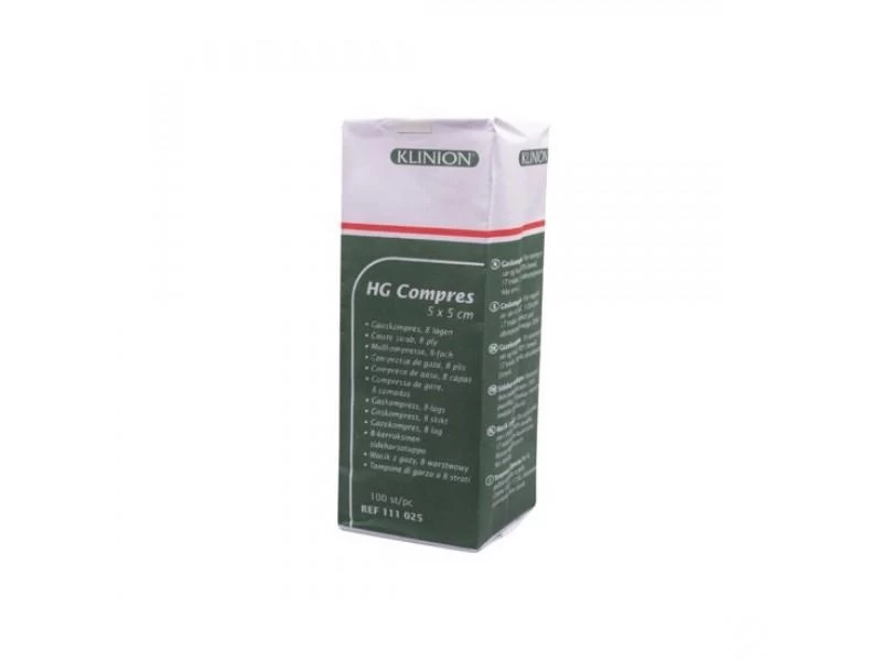 Klinion HG Compress non-sterile is a hydrophilic gauze compress that is suitable for use as a wound dressing for wounds where sterility of the compress is not a requirement. Klinion HG Compres is also suitable for cleaning wounds and wound edges. The firmness of the HG Compres makes this compress more suitable for wound cleaning than a non-woven compress.