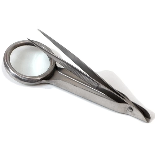 Magnifier tweezers 10cm stainless steel (length tweezers 8cm)