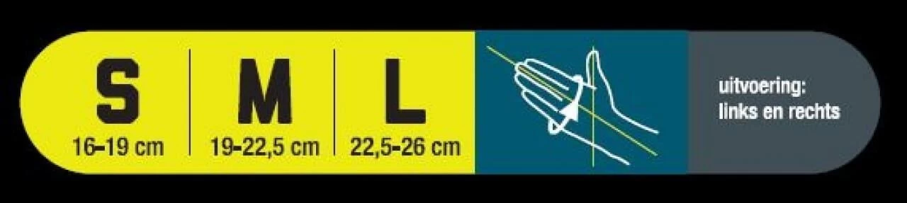 The Push Sports Thumb Brace offers a solution for persistent pain in the thumb as a result of overstretching the middle thumb joint (MCP-1) due to, for example, a ball or skiing accident. The thumb brace stabilizes the joint, giving the affected ligaments the chance to heal. The thumb cap protects the sore thumb against impact from a ball, for example. The straps on the brace are individually adjustable so that the user can determine to what extent the bending movement of the thumb should be limited. The straps also compensate for the slack that is caused by damage to the ligaments. The strap system is crosswise and provides lateral support to the middle thumb joint. The other thumb joints and the wrist retain their freedom of movement. The thumb brace keeps the palm free and fits well under a goalkeeper or ski glove.