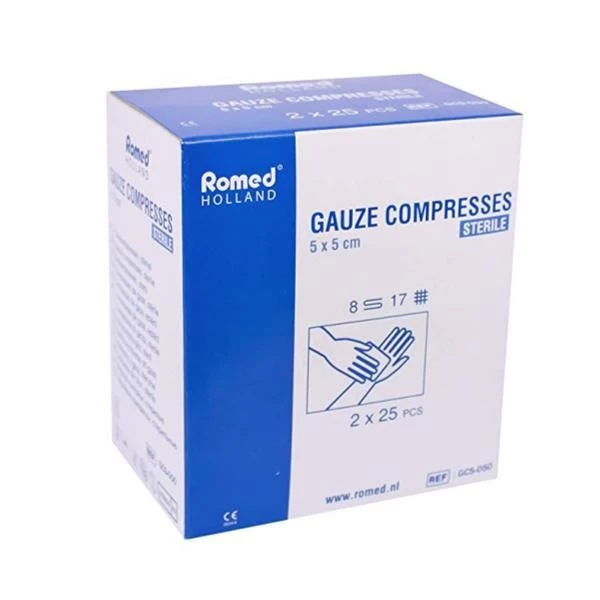 Romed gauze compress sterile 7.5×7.5cm 8 layers