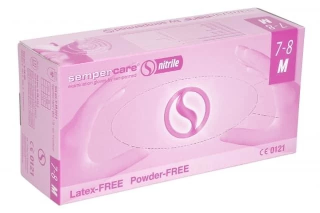 Sempercare Nitrile is robust and protective at the same time and gives a sense of security due to its high tensile strength. This glove is the product of choice for critical applications such as handling certain chemicals and cytostatics. The soft material increases wearing comfort and ensures comfortable and safe working over a longer period of time. The higher puncture resistance of nitrile (with the same wall thickness as natural latex) offers the user protection while maintaining comfort.